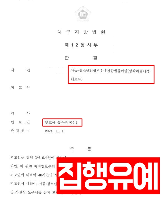 아청법위반 성착취물제작 성착취물배포 아청법위반변호사 아청법집행유예 집행유예 아청법 아청물 성착취물 성착취물제작