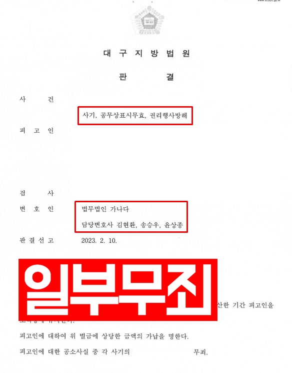 다만 공무상표시무효죄, 권리행사방해죄는 선처를 받아 벌금형을 받았습니다.