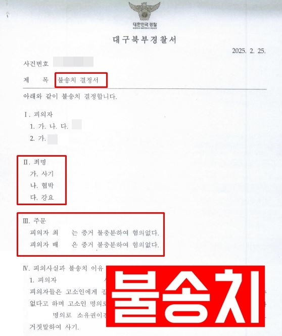 사기협박강요 사기불송치 협박불송치 강요불송치