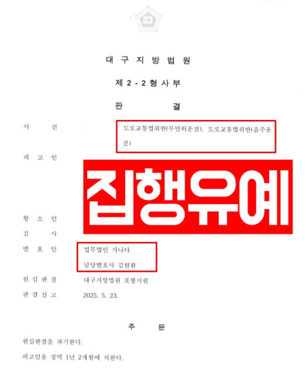 무면허운전 음주운전 무면허운전집행유예 음주운전집행유예 무면허운전변호사 음주운전변호사 무면허 음주운전항소심 항소심