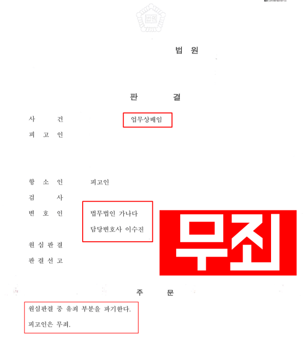 업무상배임무죄 업무상배임항소 업무상배임항소심 업무상배임처벌 업무상배임형량 업무상배임승소 항소심무죄