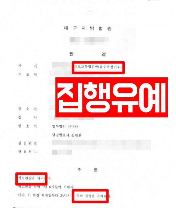 음주측정을 거부하여 1심에서 징역 3년을 선고받았으나 항소하여 집행유예를 받은 사건