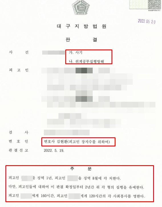 위계공무집행방해 공무집행방해 사기 집행유예 사기죄
