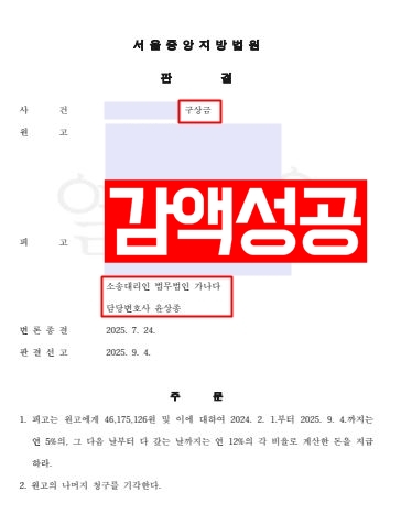 결과적으로 구상금 청구에 대해 70% 정도 감축된 금액으로 나머지 청구는 모두 기각할 수 있었습니다.