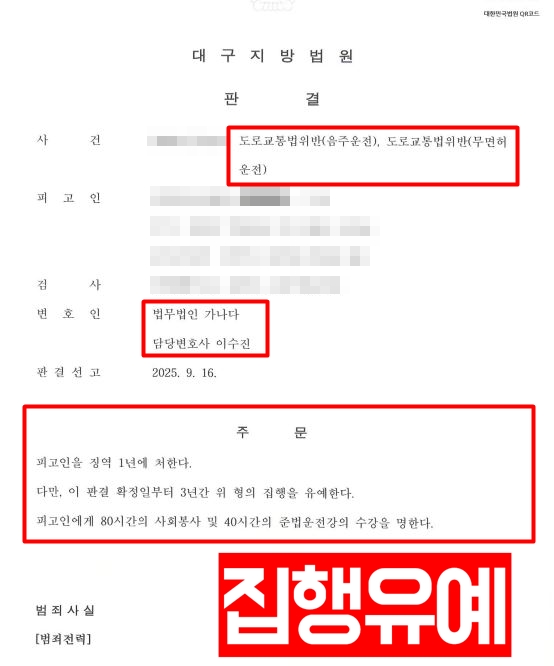 무면허운전 음주운전 음주운전재범 무면허운전변호사 음주운전재범집행유예 도로교통법위반