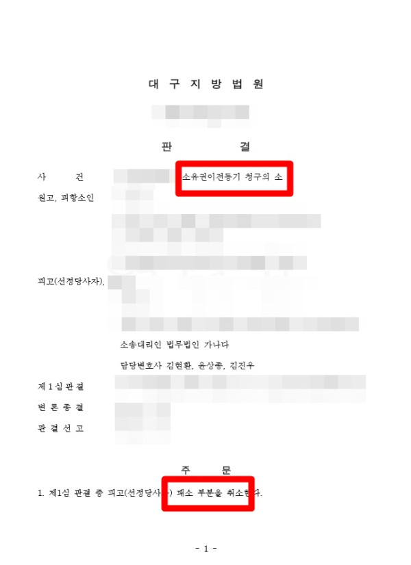 소유권이전등기청구의소변호사 소유권이전등기청구의소로펌 소유권이전등기청구의소재판 소유권이전등기청구의소승소 소유권이전등기청구의소기각