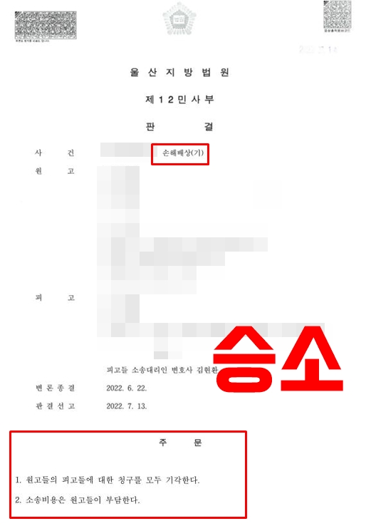 재판부는 의뢰인의 주장을 받아 들여 원고의 손해배상청구를 기각하였으며, 소송 비용 역시 원고가 부담하라고 판결하였습니다.