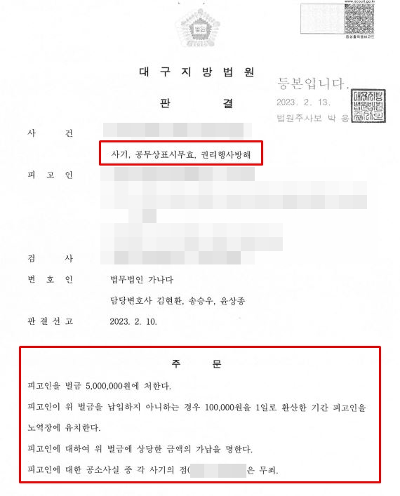 공무상비밀표시무효 공무상비밀표시 가압류 벌금형 권리행사방해 사기