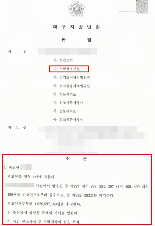 상습도박 도박장소개설 전기통신사업법위반 사문서위조 위조사문서행사 공문서위조 위조공문서행사 도박 도박개장죄