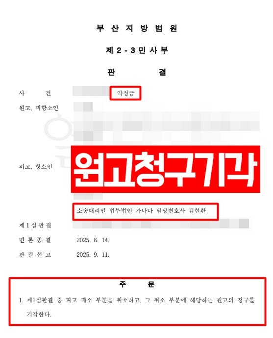 가나다를 찾아주신 의뢰인이 소송을 진행하여 약정금 전액을 기각한 사례입니다.